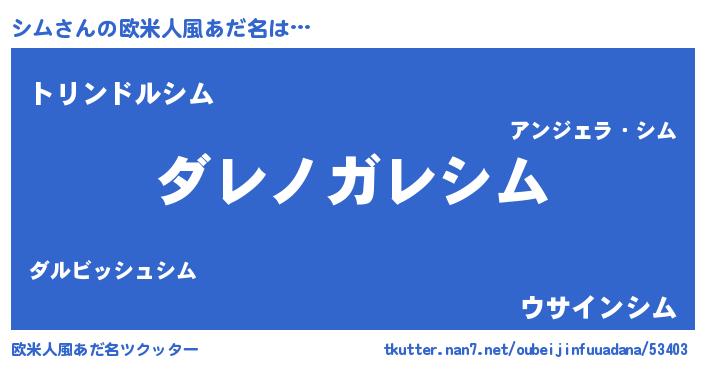 | ポケモン風あだ名 | 『シームイ』『シムキング』『ヒシム』 |