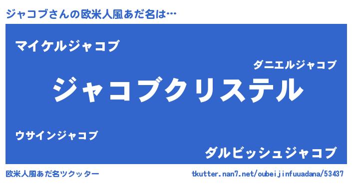 | 男性向けラノベタイトル風あだ名 | 『やはりジャコブの青春ラブコメはまちがっている 』 |