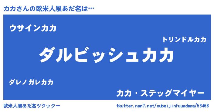 | 男性向けラノベタイトル風あだ名 | 『カカという概念が存在しない退屈な世界 』 |