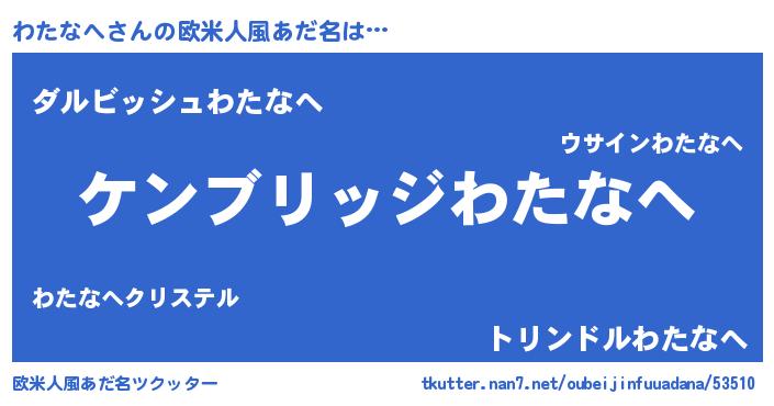 | ヘコむあだ名 | 『わたなへ(苦笑)』『わたお』 |