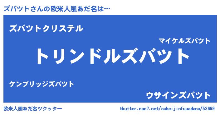 | 男性向けラノベタイトル風あだ名 | 『ズバツト~年齢イコール彼女いない歴の魔法使い~』 |