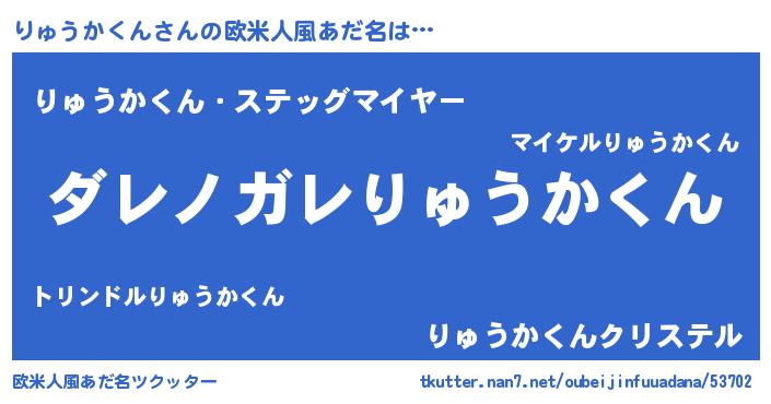 | 男性向けラノベタイトル風あだ名 | 『魔弾の王とりゅうかくん』 |