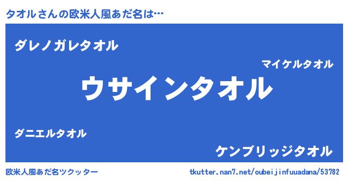 | 女子向けラノベタイトル風あだ名 | 『タオルの卵を拾いまして』 |