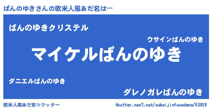 | 男性向けラノベタイトル風あだ名 | 『バンノユキアートオンライン』 |