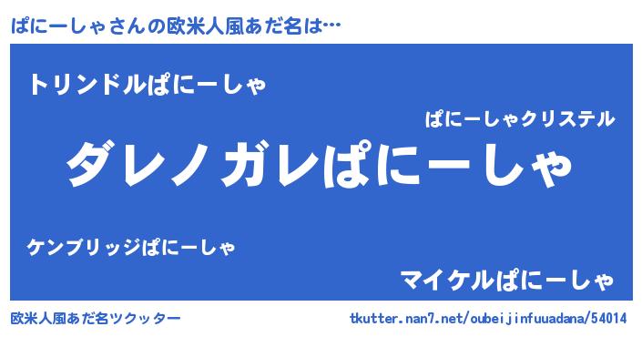 | 男性向けラノベタイトル風あだ名 | 『この素晴らしい世界にぱにーしゃを!』 |