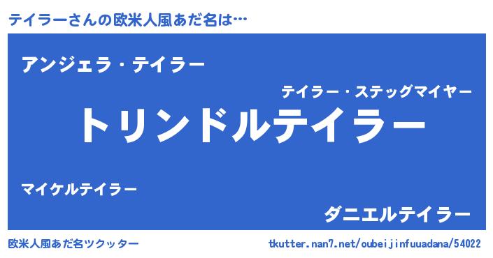 | 男性向けラノベタイトル風あだ名 | 『テイラー~年齢イコール彼女いない歴の魔法使い~』 |