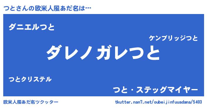 | 男性向けラノベタイトル風あだ名 | 『この素晴らしい世界につとを!』 |
