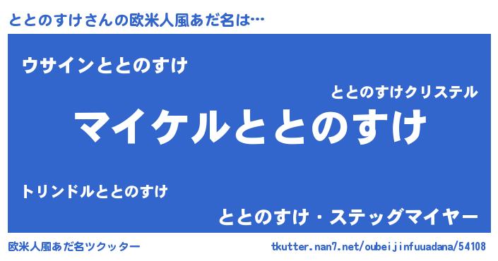 | 女子向けラノベタイトル風あだ名 | 『(仮)ととのすけのやんごとなき事情』 |