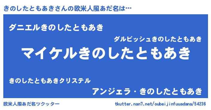 | 男性向けラノベタイトル風あだ名 | 『きのしたともあきの憂鬱』 |