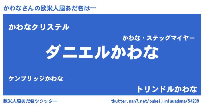 | ヒーロー風カッコイイあだ名 | 『慈愛の使者かわな』『超時空戦士カワナ』 |