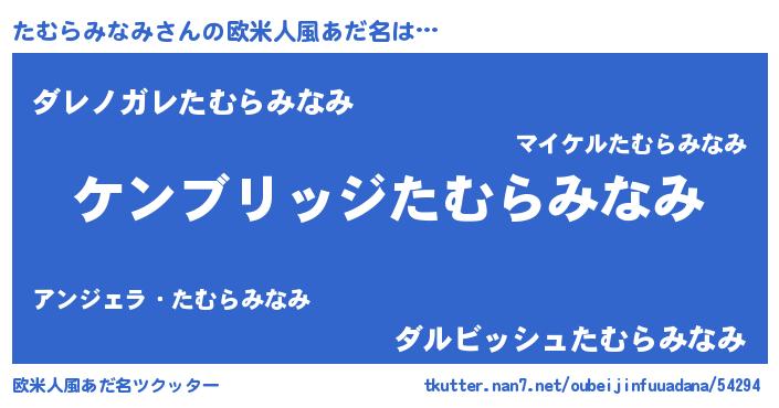 | 男性向けラノベタイトル風あだ名 | 『Re:たむらみなみから始める異世界生活』 |