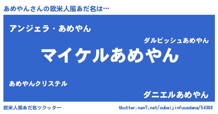 | ヒーロー風カッコイイあだ名 | 『スーパーアメヤン』『愛の使者あめやん』 |