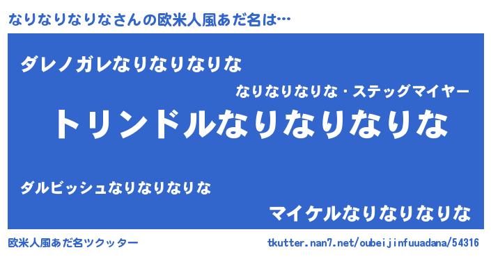 男性向けラノベタイトル風あだ名 | 『ナリナリナリナスレイヤー』 |