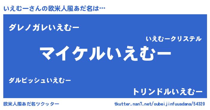 | 男性向けラノベタイトル風あだ名 | 『いえむーの憂鬱』『魔弾の王といえむー』 |