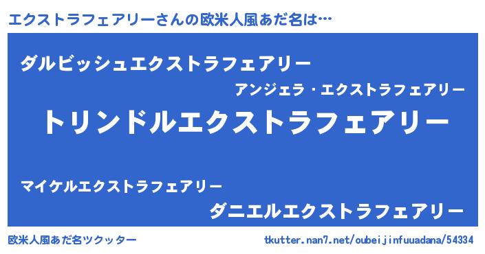 | 男性向けラノベタイトル風あだ名 | 『エクストラフェアリー~年齢イコール彼女いない歴の魔法使い~』 |