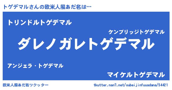 | ヒーロー風カッコイイあだ名 | 『仮面トゲダー』『スーパートゲデマル』 |