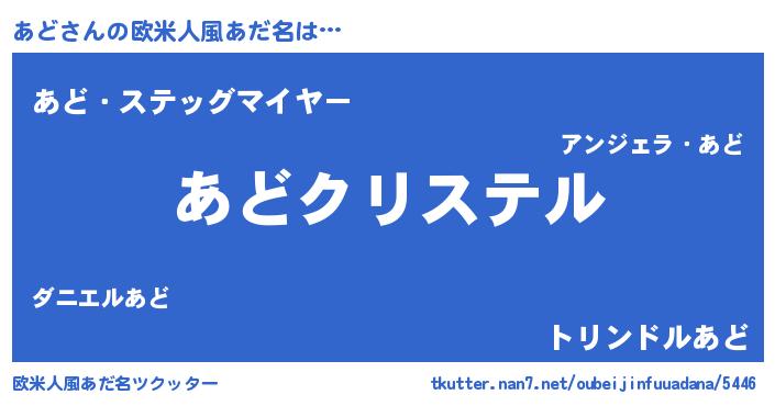 | 女子向けラノベタイトル風あだ名 | 『あどの雑貨屋さん』『死神あどの再婚』 |
