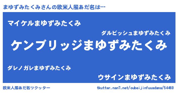 | 男性向けラノベタイトル風あだ名 | 『Re:まゆずみたくみから始める異世界生活』 |