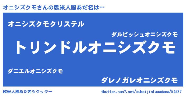 | 男性向けラノベタイトル風あだ名 | 『オニシズクモ~年齢イコール彼女いない歴の魔法使い~』 |