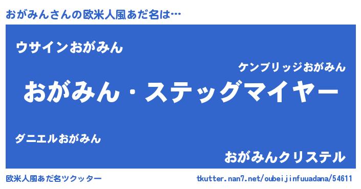 | 男性向けラノベタイトル風あだ名 | 『うちのおがみんが世界を掌握している!』 |