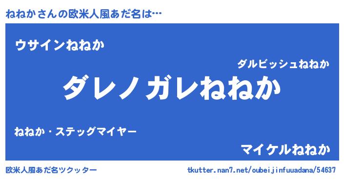 | 男性向けラノベタイトル風あだ名 | 『この素晴らしい世界にねねかを!』 |