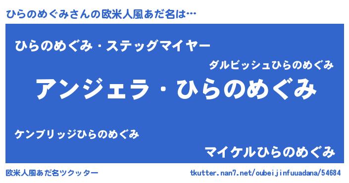 | 男性向けラノベタイトル風あだ名 | 『ひらのめぐみに滅ぼされるだけの簡単なお仕事です』 |