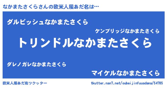 | 男性向けラノベタイトル風あだ名 | 『ナカマタサクラスレイヤー』 |