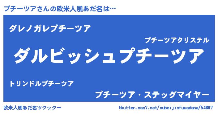 | 男性向けラノベタイトル風あだ名 | 『プチーツアという概念が存在しない退屈な世界 』 |
