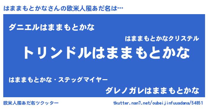 | 男性向けラノベタイトル風あだ名 | 『はままもとかな~年齢イコール彼女いない歴の魔法使い~』 |