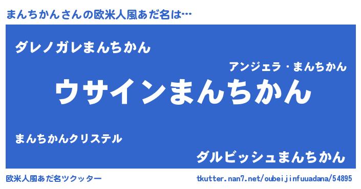 | 男性向けラノベタイトル風あだ名 | 『まんちかんの嫁は女の子じゃないと思った?』 |