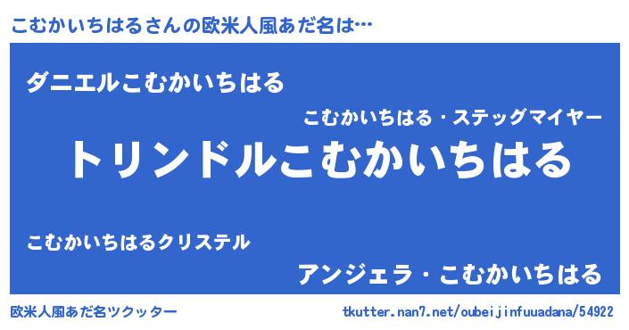 | 男性向けラノベタイトル風あだ名 | 『転生したらこむかいちはるだった件』 |