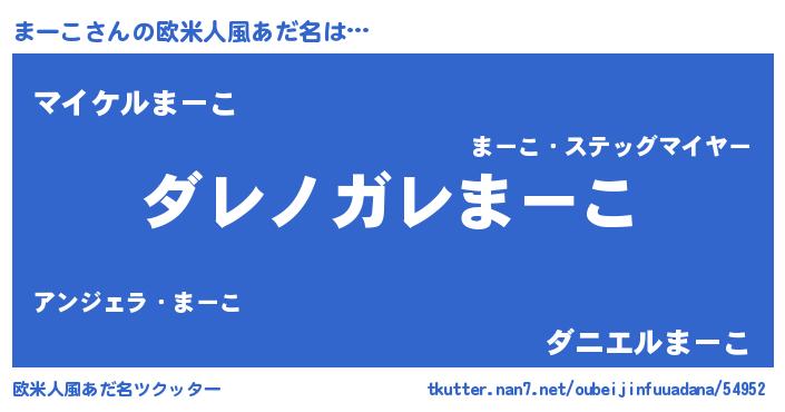 | 男性向けラノベタイトル風あだ名 | 『この素晴らしい世界にまーこを!』 |