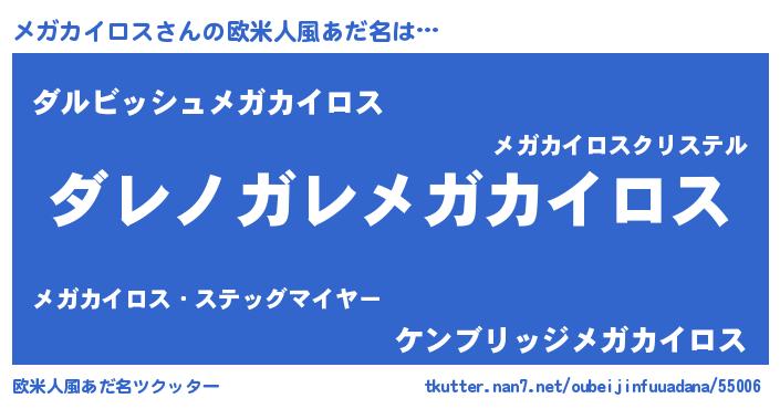 | 男性向けラノベタイトル風あだ名 | 『この素晴らしい世界にメガカイロスを!』 |