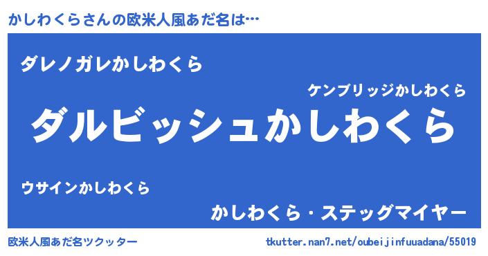 | ヘコむあだ名 | 『かしわくら(遠い目)』『かしっ子』 |
