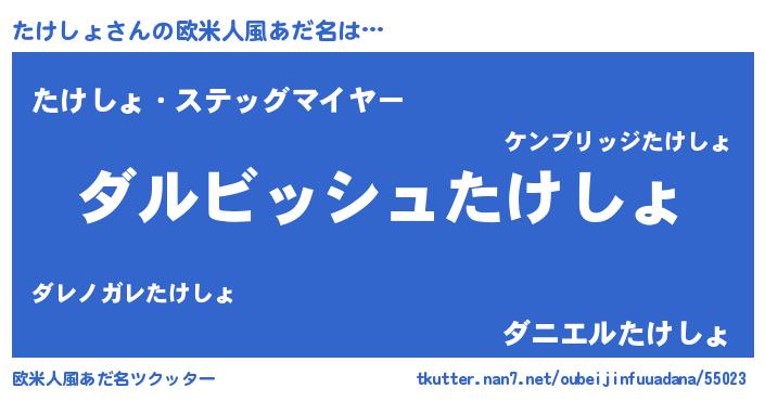 | 女子向けラノベタイトル風あだ名 | 『異世界で失敗しない100のたけしょ』 |
