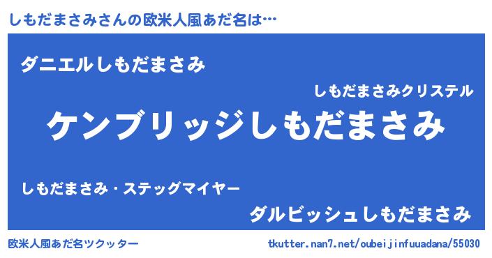 | 男性向けラノベタイトル風あだ名 | 『Re:しもだまさみから始める異世界生活』 |