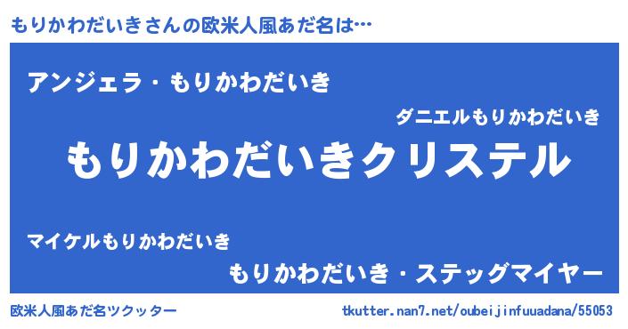 | 男性向けラノベタイトル風あだ名 | 『やはりもりかわだいきの青春ラブコメはまちがっている 』 |