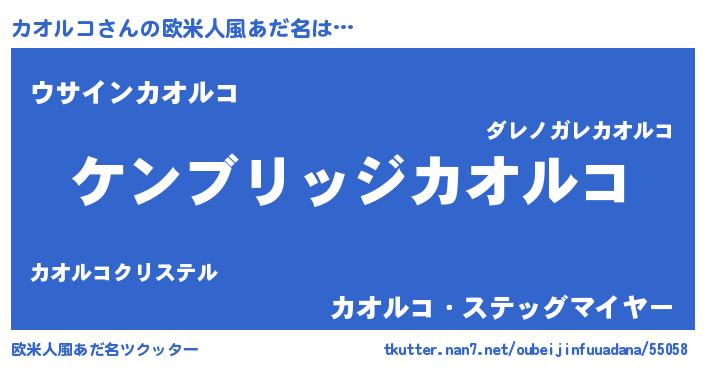 | 男性向けラノベタイトル風あだ名 | 『Re:カオルコから始める異世界生活』 |