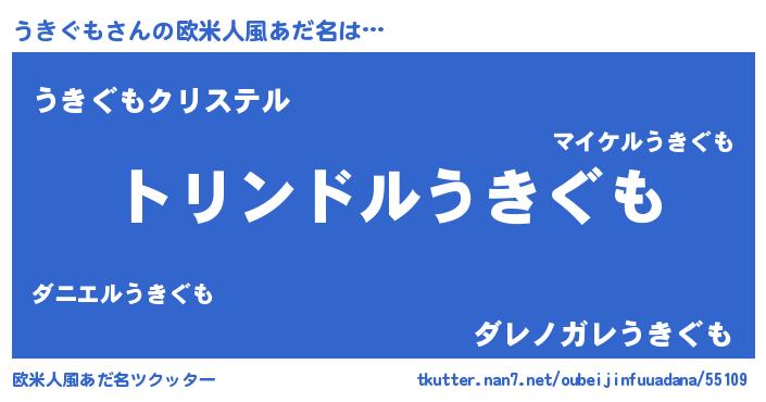| 男性向けラノベタイトル風あだ名 | 『うきぐも~年齢イコール彼女いない歴の魔法使い~』 |