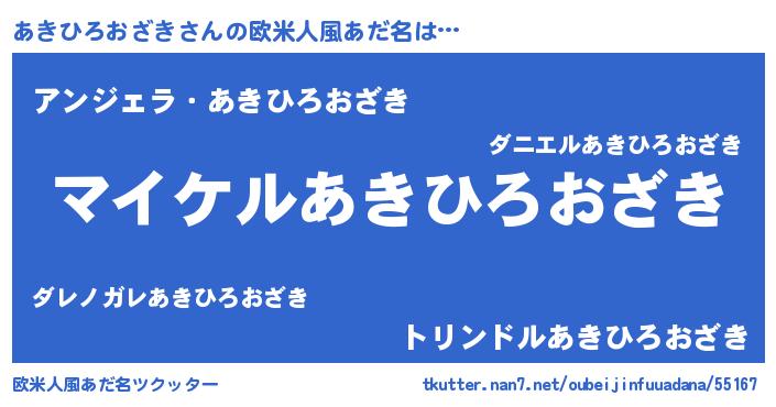 | 男性向けラノベタイトル風あだ名 | 『アキヒロオザキアートオンライン』 |