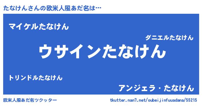 | 男性向けラノベタイトル風あだ名 | 『たなけんの嫁は女の子じゃないと思った?』 |