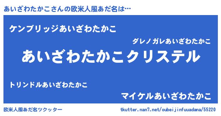 | 女子向けラノベタイトル風あだ名 | 『あいざわたかこの雑貨屋さん』 |