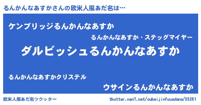 | ヘコむあだ名 | 『るんかんなあすか(笑)』『るんっ子』 |