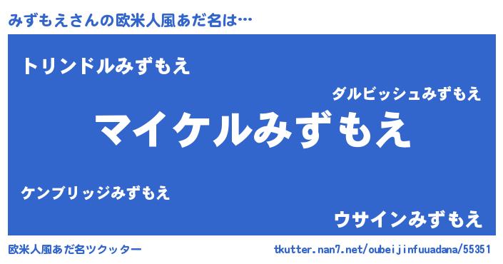 | 男性向けラノベタイトル風あだ名 | 『みずもえの憂鬱』 |