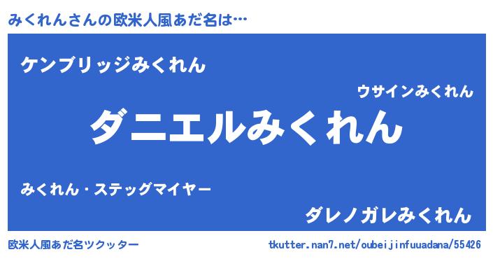 | 男性向けラノベタイトル風あだ名 | 『おまえをオタクにしてやるから、俺をみくれんにしてくれ! 』 |