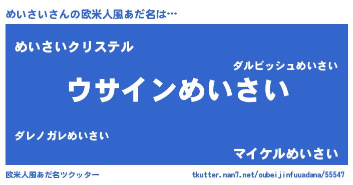 | 男性向けラノベタイトル風あだ名 | 『めいさいの嫁は女の子じゃないと思った?』 |