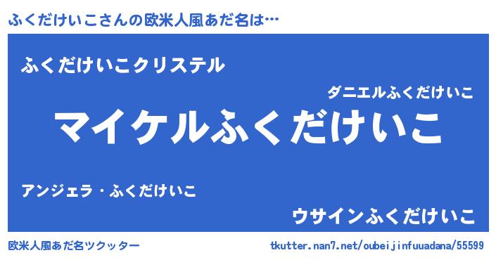 | 男性向けラノベタイトル風あだ名 | 『ふくだけいこの憂鬱』 |