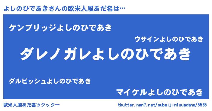| 男性向けラノベタイトル風あだ名 | 『この素晴らしい世界によしのひであきを!』 |
