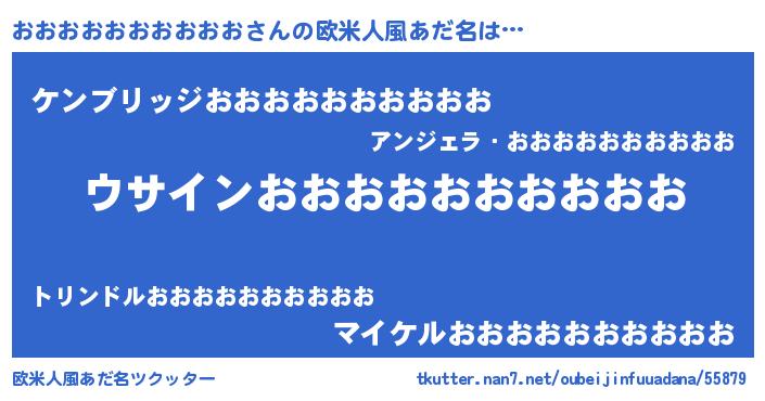 | 男性向けラノベタイトル風あだ名 | 『おおおおおおおおおおの嫁は女の子じゃないと思った?』 |