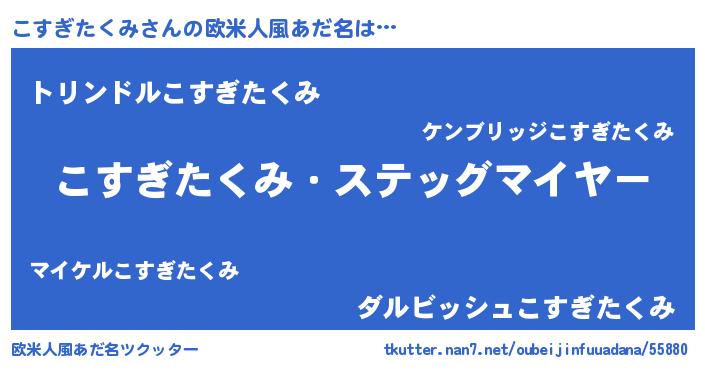 | ヘコむあだ名 | 『こすぎたくみ(苦笑)』『こすにー』 |